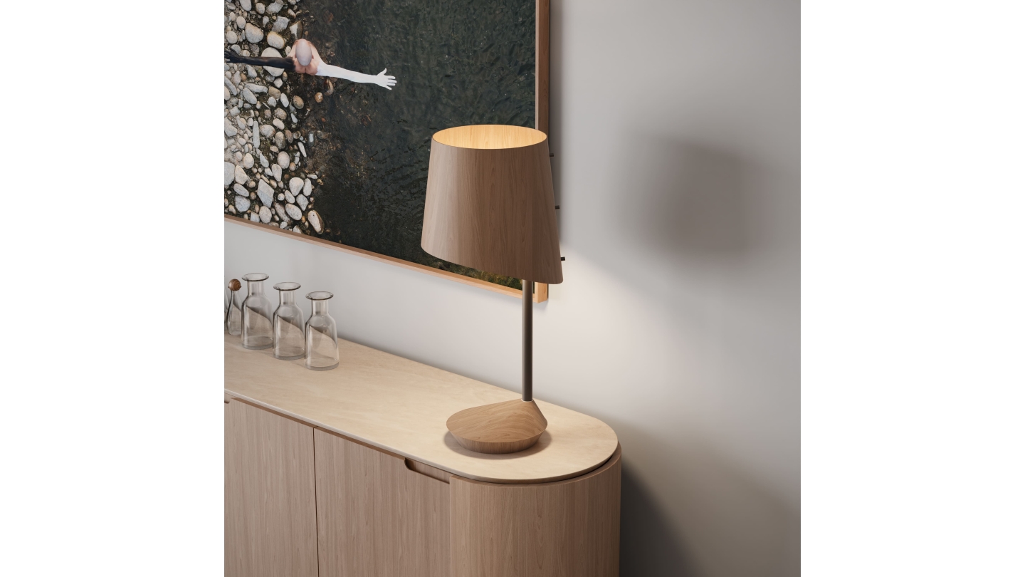 Pé madeira + Cúpula Carvalho ou Nogueira;