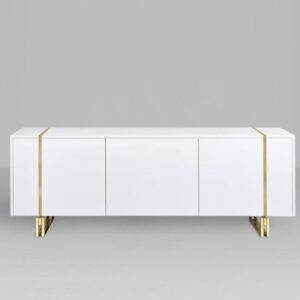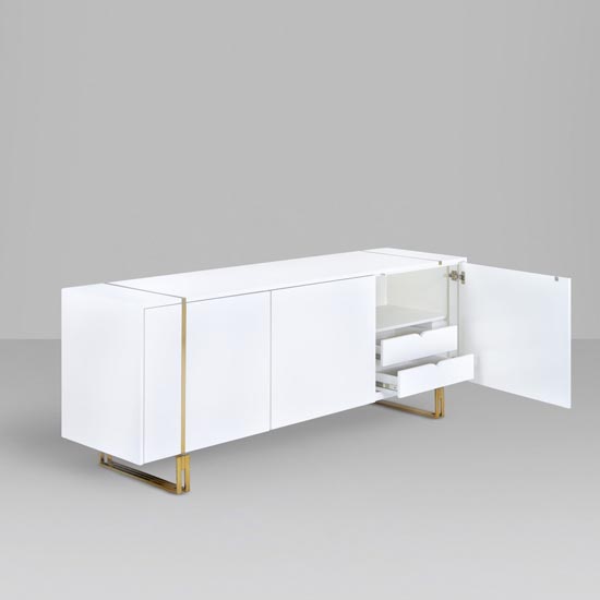 Base e detalhes em aço/ Estrutura em mdf/ Acab. em laca ou lâmina/ 2 gavetas internas.