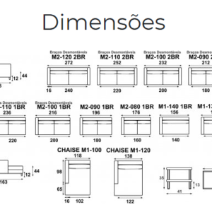 Pés em madeira nas cores imbuia, ébano e amêndoa ou metal.