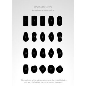 Acabamentos de Tampo: Mármore, Eco Stone, Cimentício, Madeira Laqueada, Madeira Laminada, Vidro Pintado, Vidro Transparente