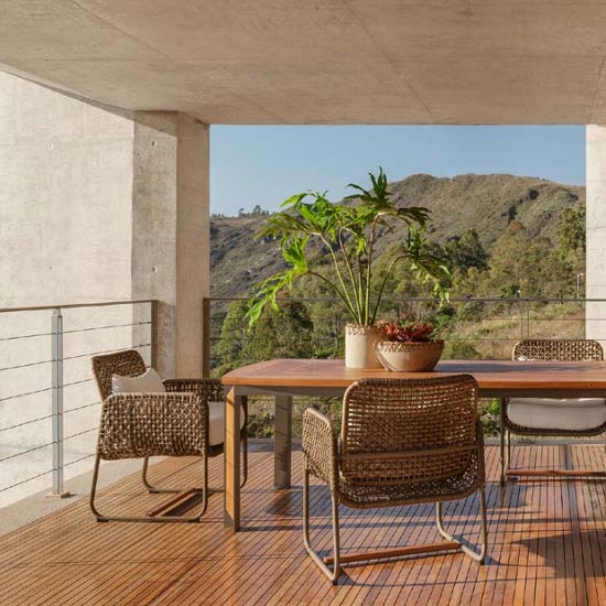Acabamentos: Alumínio, Fibra Sintética Torcida 6mm / Fibra Sintética Chata 10mm, Madeira Cumaru, Tecido Acrílico.