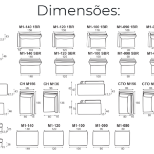 Sofá de living, modulado com braços desmontáveis, opção de chaise-longue, canto e puff.