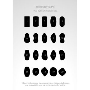 Acabamentos de Tampo: Mármore, Eco Stone, Cimentício, Madeira Laqueada, Madeira Laminada, Vidro Pintado, Vidro Transparente