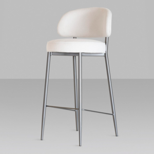 Estrutura em madeira/ Espuma de alta qualidade/ Estofada/ Base em aço inox polido;