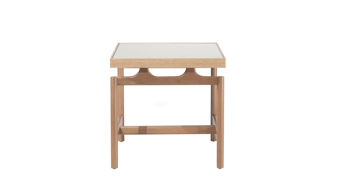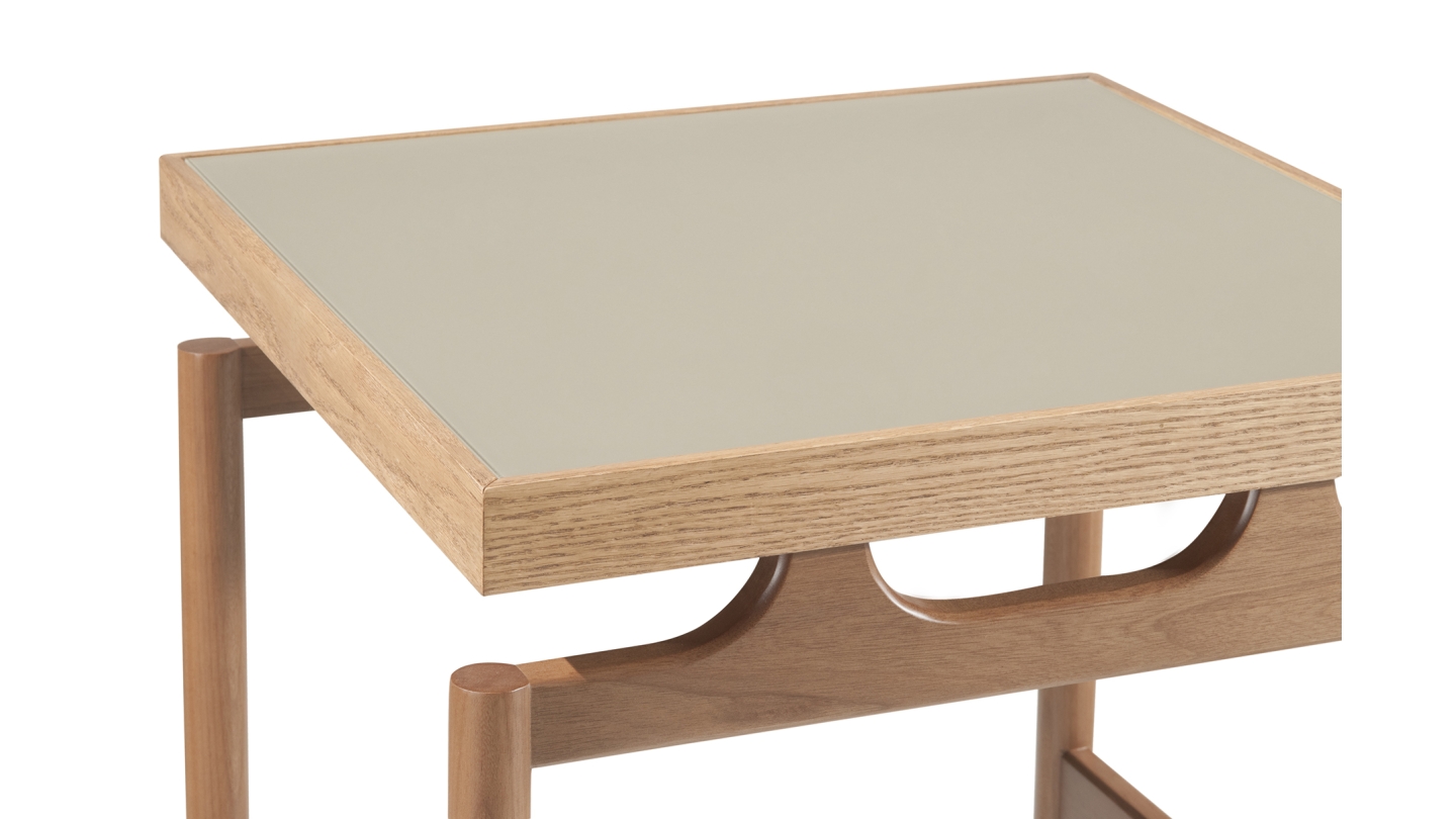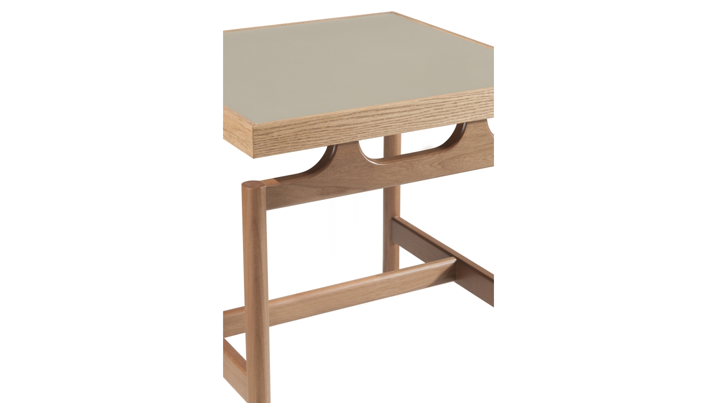 Pé Madeira + Tampo Carvalho com Vidro;