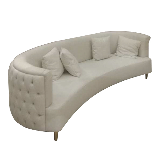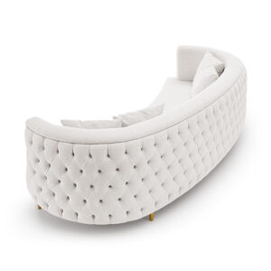 Sofá de living com capitonê feito à mão no encosto.